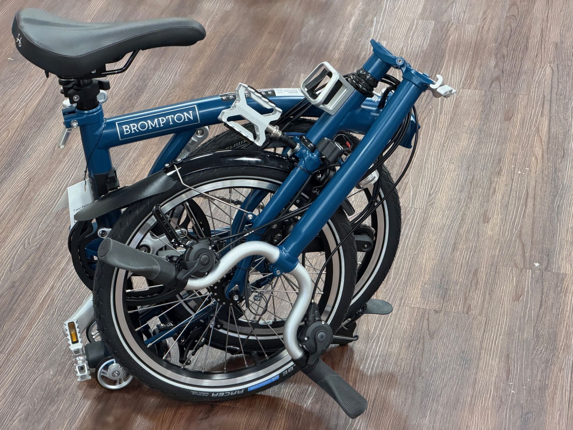 hier haben wir an einem Brompton in der Farbe Ocean Blau folgende Teile in silber getauscht: