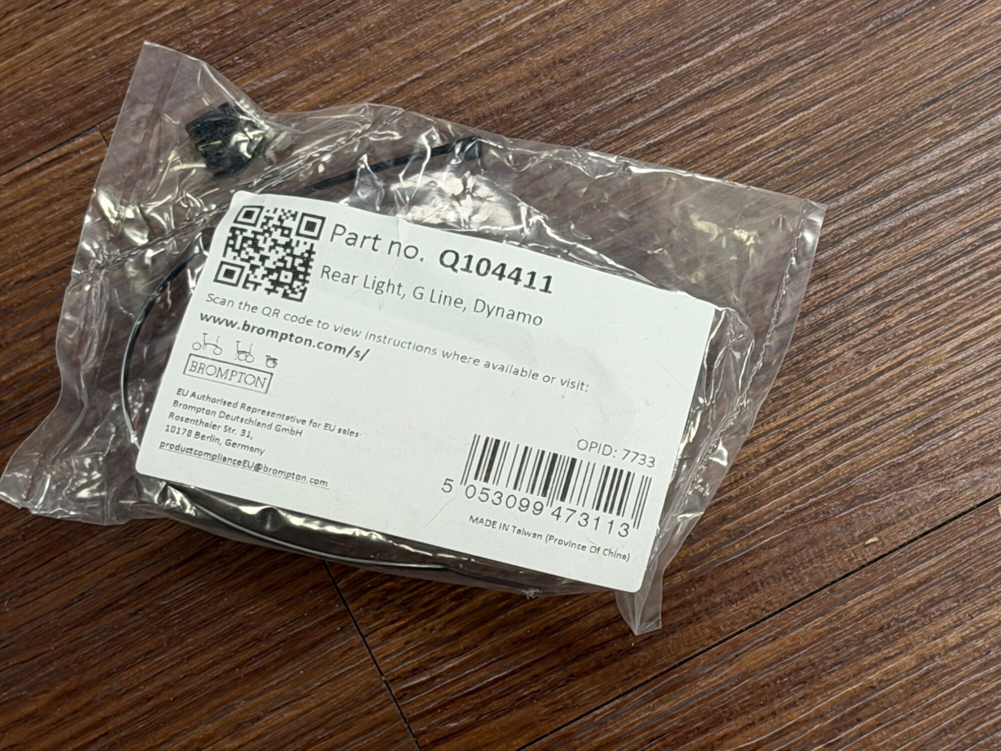 Hier ist das Brompton G Line Nabendynamolicht mit Kabel