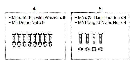 sowie die 8 zur Montage der Quer-verstrebung.